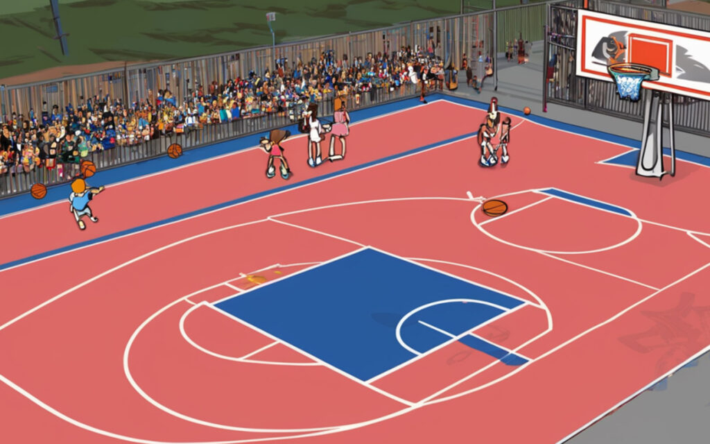 Basketball is a team sport in which two teams, most commonly of five players each, opposing one another on a rectangular court, compete with the primary objective of shooting a basketball (approximately 9.4 inches (24 cm) in diameter) through the defender’s hoop (a basket 18 inches (46 cm) in diameter mounted 10 feet (3.048 m) high to a backboard at each end of the court), while preventing the opposing team from shooting through their own hoop.