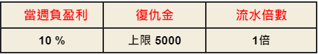 3.負盈利回饋10% 最高上限 5000,活動彩金須1倍流水,即可提領