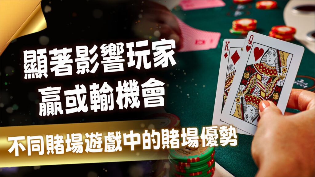 賭場優勢因玩的賭場遊戲不同而變化。以下是一些常見賭場遊戲中的賭場優勢的簡要概述: